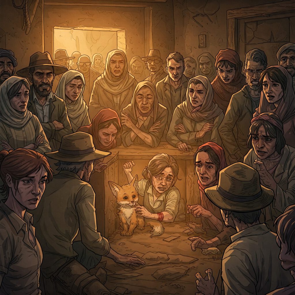 Dusty, der kleine Wüstenfuchs, saß derweil auf einer verstaubten Holzkiste in der Nähe und beobachtete die berührende Szene mit seinen klugen, wachsamen Augen, ein stummer Zeuge der wundersamen Wandlung.
